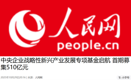 今天,推出系列报道第7期:人民网推出的《中央企业战略性新兴产业发展专项基金启航 首期募集510亿元》。
