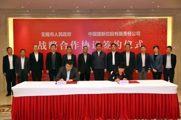 11月24日,中国国新与无锡市政府战略合作签约仪式在无锡举行。中国国新党委副书记、总经理莫德旺,无锡市代市长黄钦、无锡市政府秘书长许立新出席签约仪式。中国国新副总经理黄耀文,无锡市政府副秘书长钮素芬代表双方签署战略合作协议。