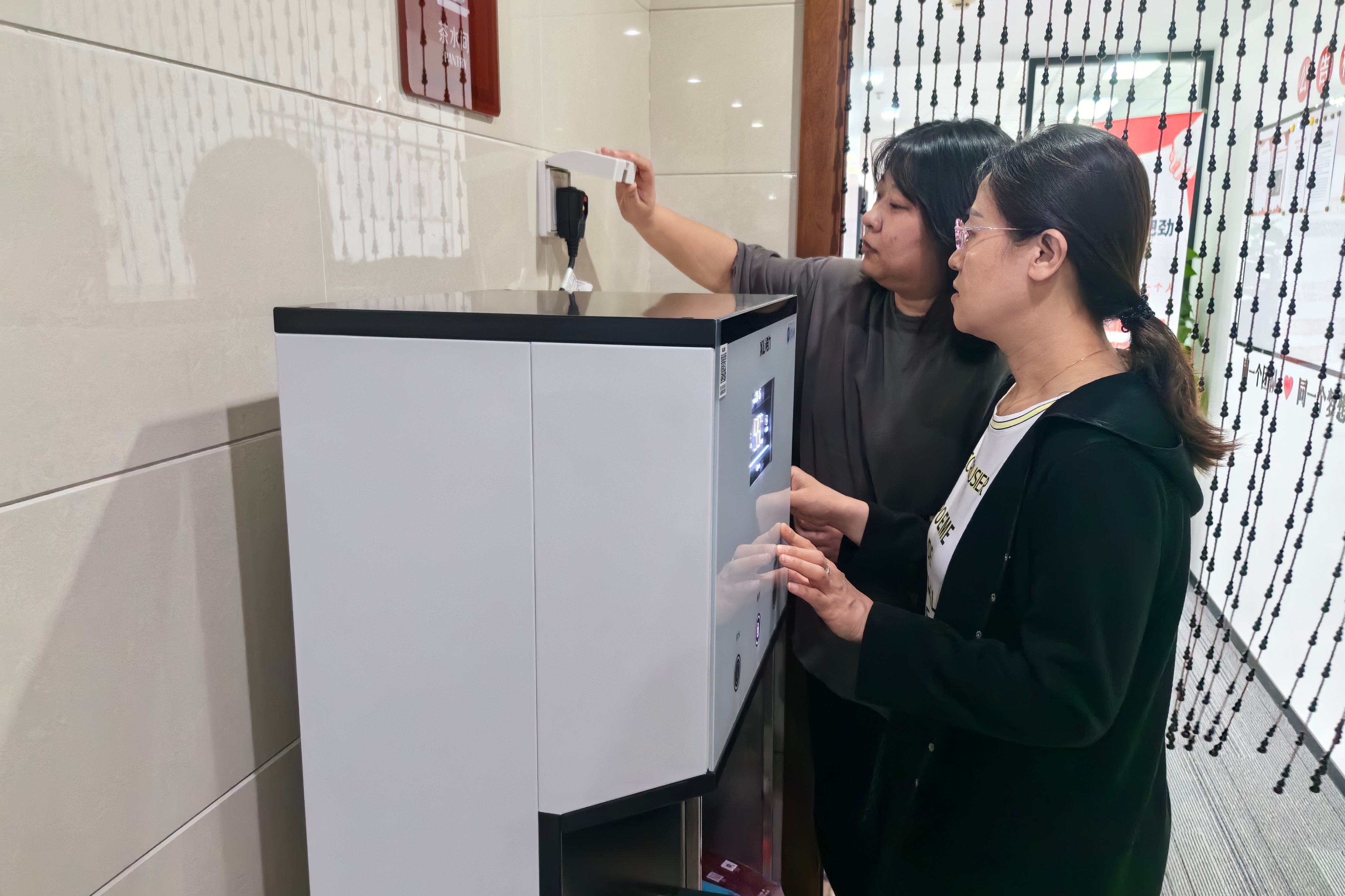 胡月(左)在进行职场安全检查