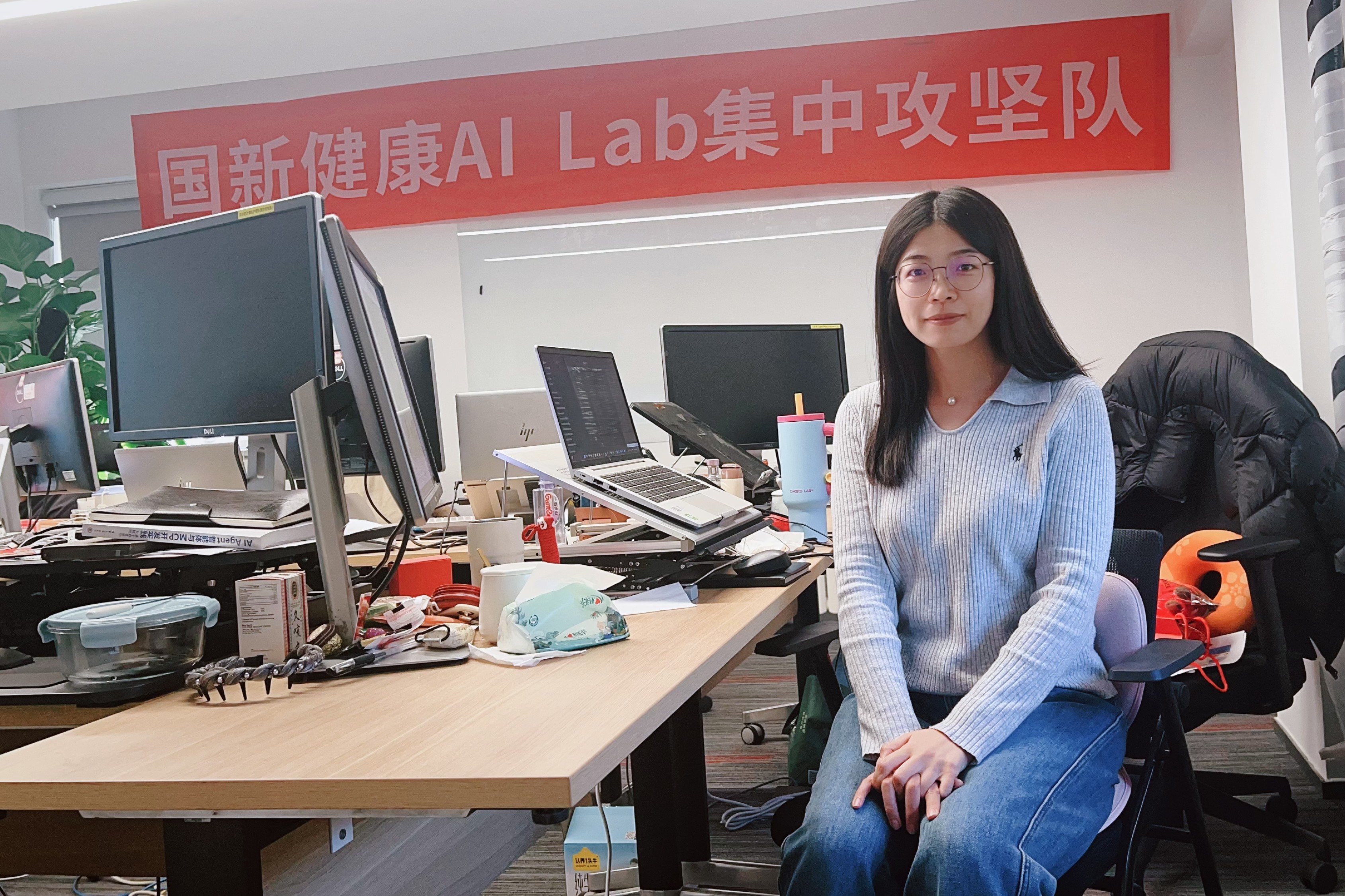 高华超在国新健康AI Lab集中攻坚工作间隙留影