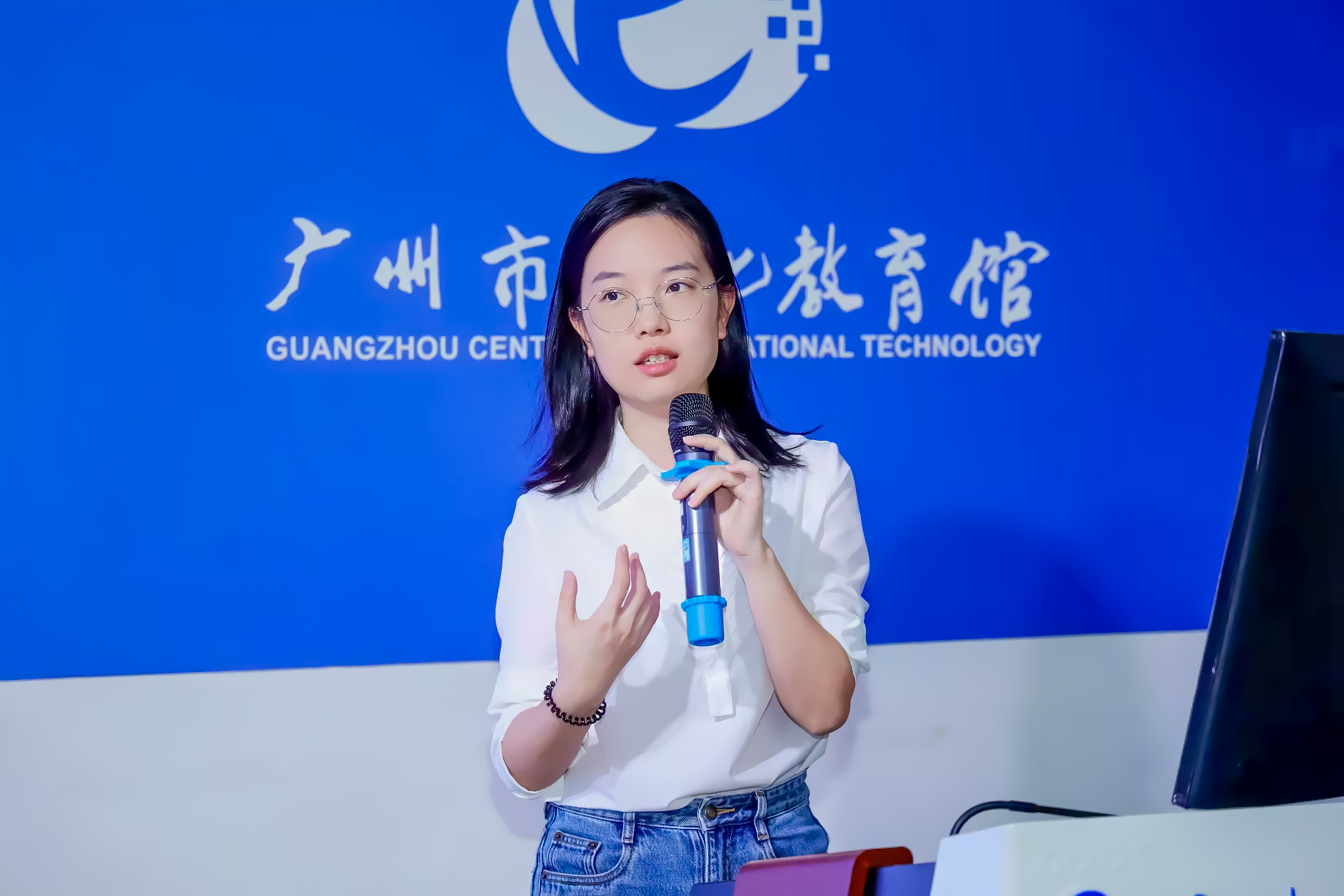 李茜在“AI+教育”创新展示现场活动中讲解方案