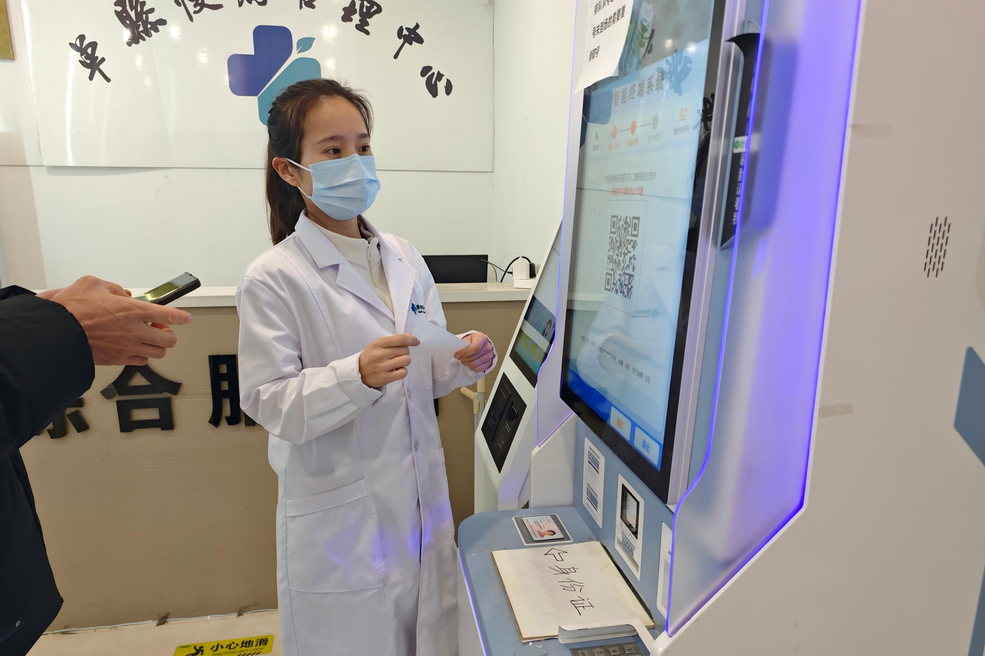 张玉配在单县慢病管理中心帮助患者使用智能挂号机