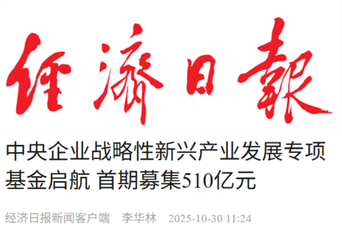 今天,推出系列报道第4期:经济日报推出的《中央企业战略性新兴产业发展专项基金启航 首期募集510亿元》。