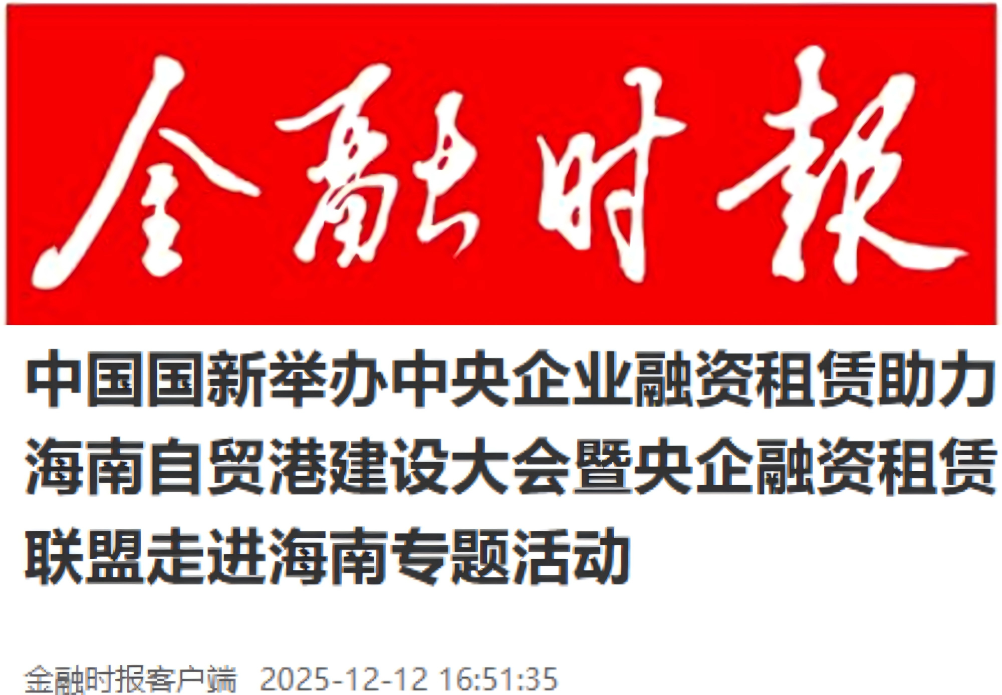 12月11日,中国国新联合海南省委金融办、海南省国资委、三亚市政府、央企融资租赁联盟在海南三亚共同举办中央企业融资租赁助力海南自贸港建设大会暨央企融资租赁联盟走进海南专题活动。在同期举办的“媒体进国新”之“央企融资租赁联盟篇”活动中,多家媒体关注联盟走进海南专题活动,刊发多篇报道。