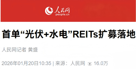 1月20日,人民网发布《首单“光伏+水电”REITs扩募落地》一文,报道国新资产投资的中航京能光伏封闭式基础设施REIT扩募上市,这也是国内首单以“光伏+水电”资产混装模式进行的公募REITs扩募项目。现将全文转载如下: