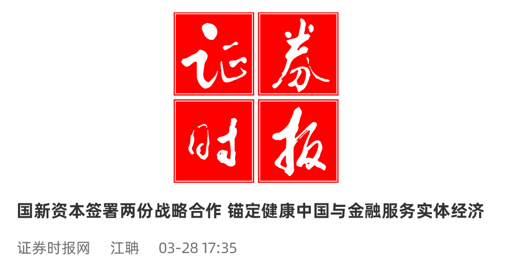 今天,推出系列报道第5期:“证劵时报”推出的《国新资本签署两份战略合作锚定健康中国与金融服务实体经济》。