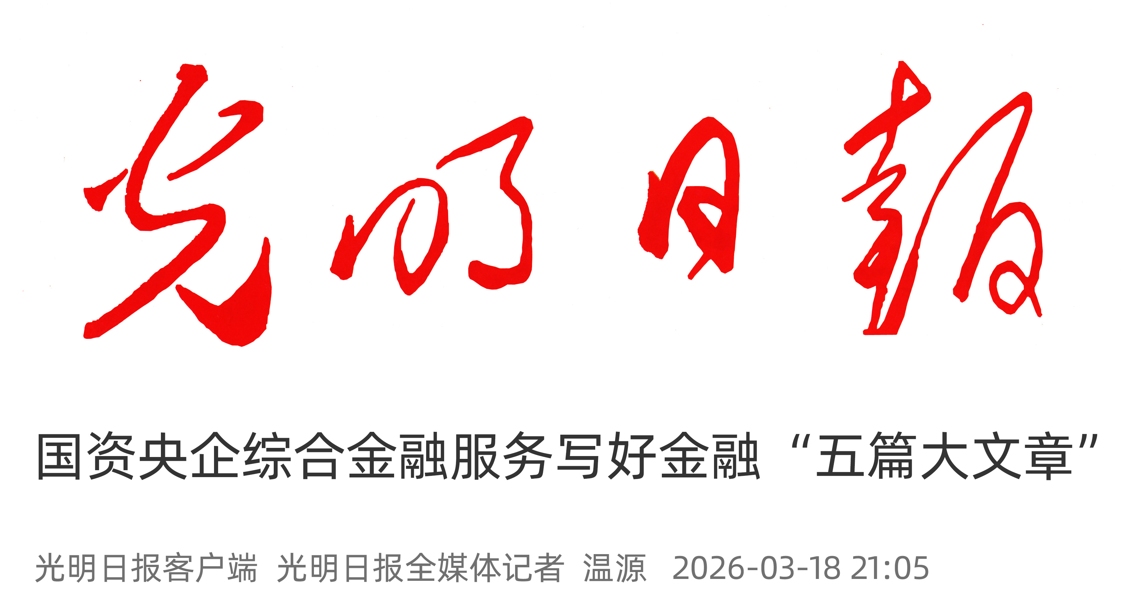 3月18日,光明日报发布《国资央企综合金融服务写好金融“五篇大文章”》,报道国新资本作为国资央企综合金融服务平台,通过设立运营融资租赁、商业保理、公募基金、期货、金融科技等功能企业,积极落实金融“五篇大文章”,为国资央企提供差异化、特色化、一站式金融服务,助推实体经济发展。现全文转载如下:
