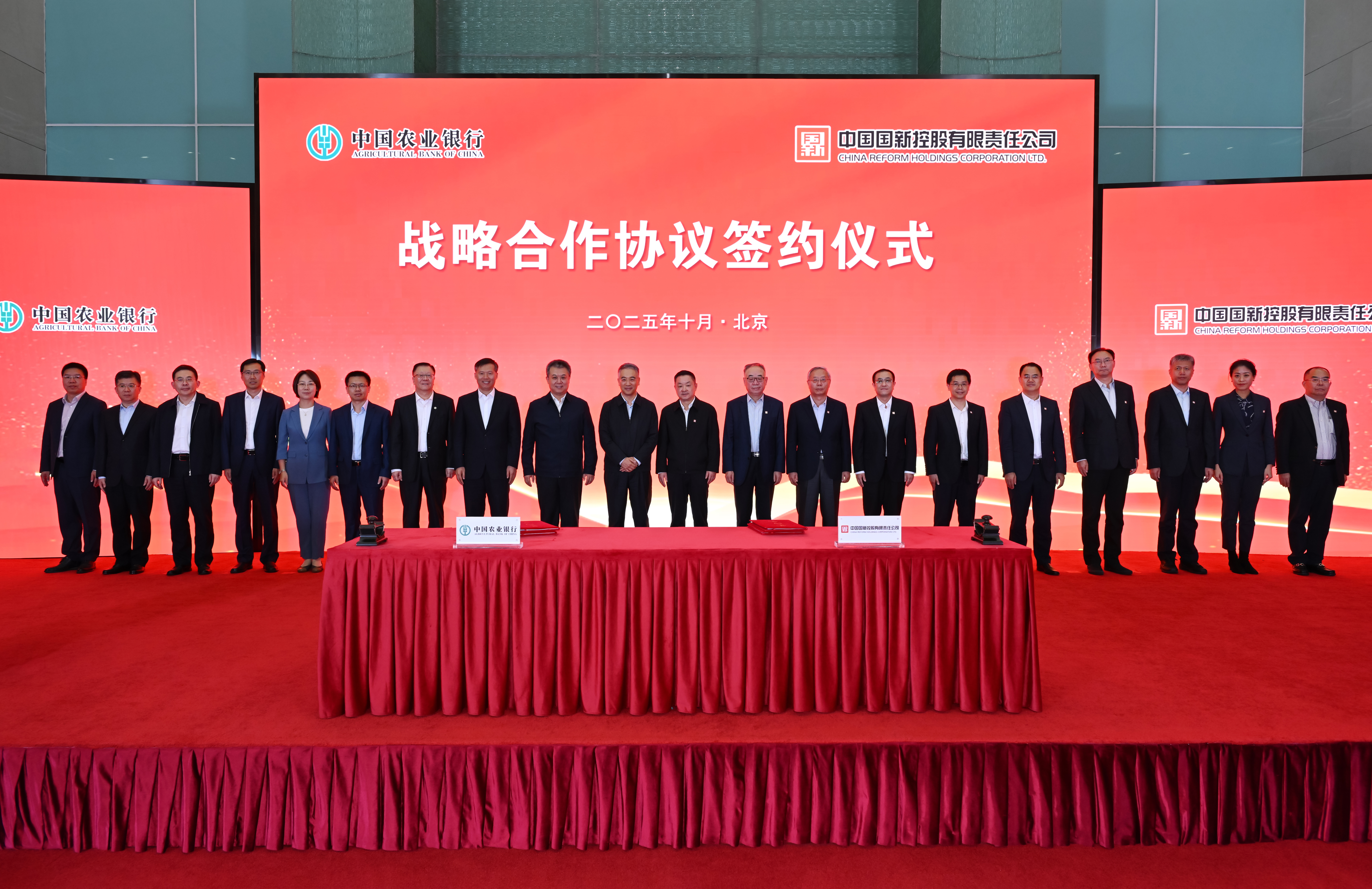 10月9日,中国国新与中国农业银行签署战略合作协议。中国农业银行董事长、党委书记谷澍,行长、党委副书记王志恒,中国国新党委书记、董事长徐思伟出席活动并见证签约。中国农业银行副行长、党委委员王大军,中国国新党委委员、总会计师刘学诗代表双方签署协议。中国国新党委委员、副总经理王豹参加活动。