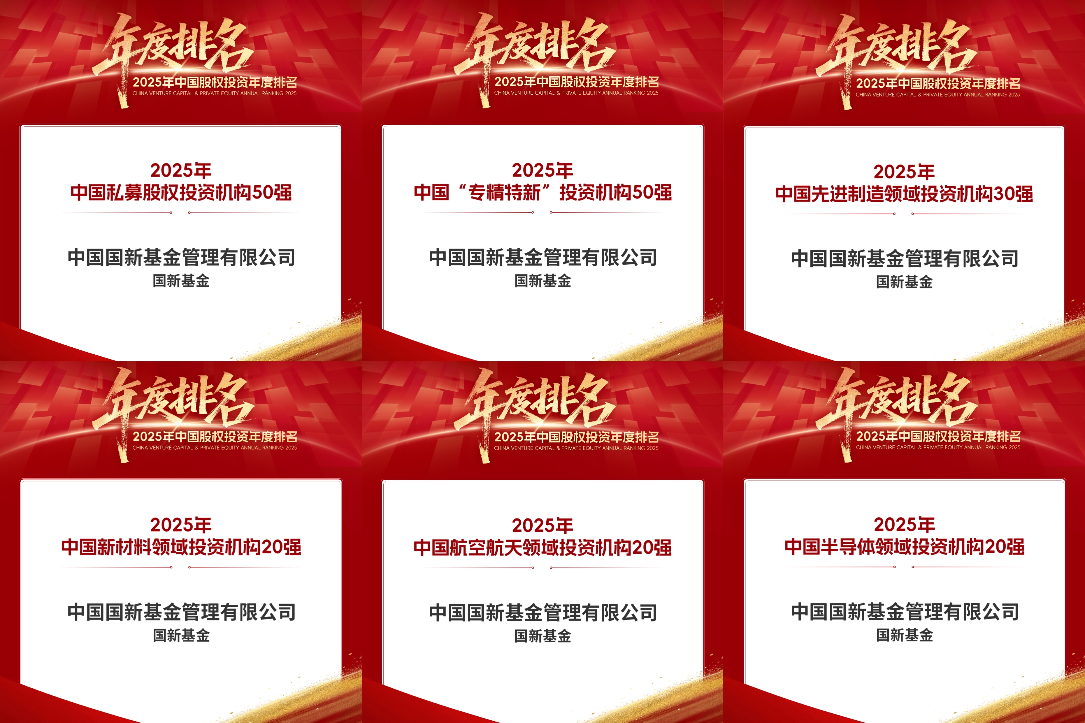 12月29日,清科研究中心发布2025年中国股权投资年度排名,国新基金获评“2025年中国私募股权投资机构50强”第7名,以及“中国‘专精特新’投资机构50强”“中国先进制造领域投资机构30强”“中国新材料领域投资机构20强”“中国航空航天领域投资机构20强”“中国半导体领域投资机构20强”等多个奖项。