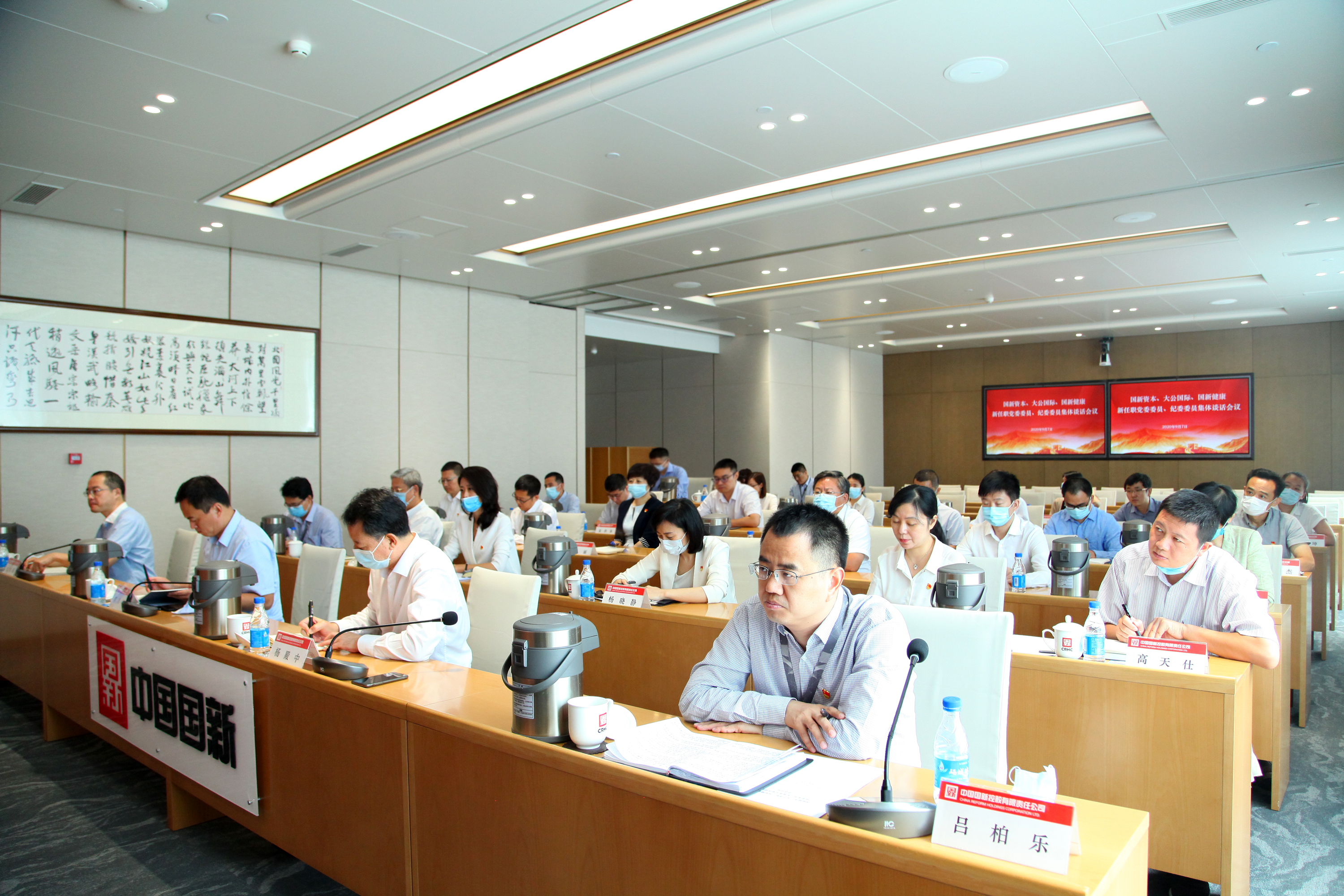 中国国新对外投资专项管委会(中海恒项目)常务副主任、国新健康党委副书记、总裁李永华;党委组织部,党群工作部,纪委综合审理室、监督执纪室负责同志;国新资本、大公国际、国新健康新任职党委委员、纪委委员参加会议。