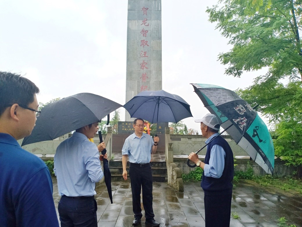 调研期间,周渝波一行还专门瞻仰了贺龙智取汪家营纪念碑,倾听当地群众讲述贺龙领导的中国工农红军红二军团在利川境内十进十出,沿途打土豪、斗劣绅,带领劳苦大众翻身得解放的丰功伟绩。周渝波表示,要继承和发扬革命先烈坚定信仰、不怕困难、敢于斗争、勇往直前的革命精神,扎扎实实地搞好当前“不忘初心、牢记使命”主题教育活动,进一步坚定理想信念,传承红色基因,始终不忘为人民谋幸福的初心,牢记打赢脱贫攻坚战的使命,在利川这片红色热土上做出新的贡献。