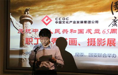 为庆祝建国65周年,活跃职工文化生活,中国文发集团党委、工会、团委联合举办职工优秀书画、摄影作品展。集团公司党委书记石予友出席活动开幕式并致辞。