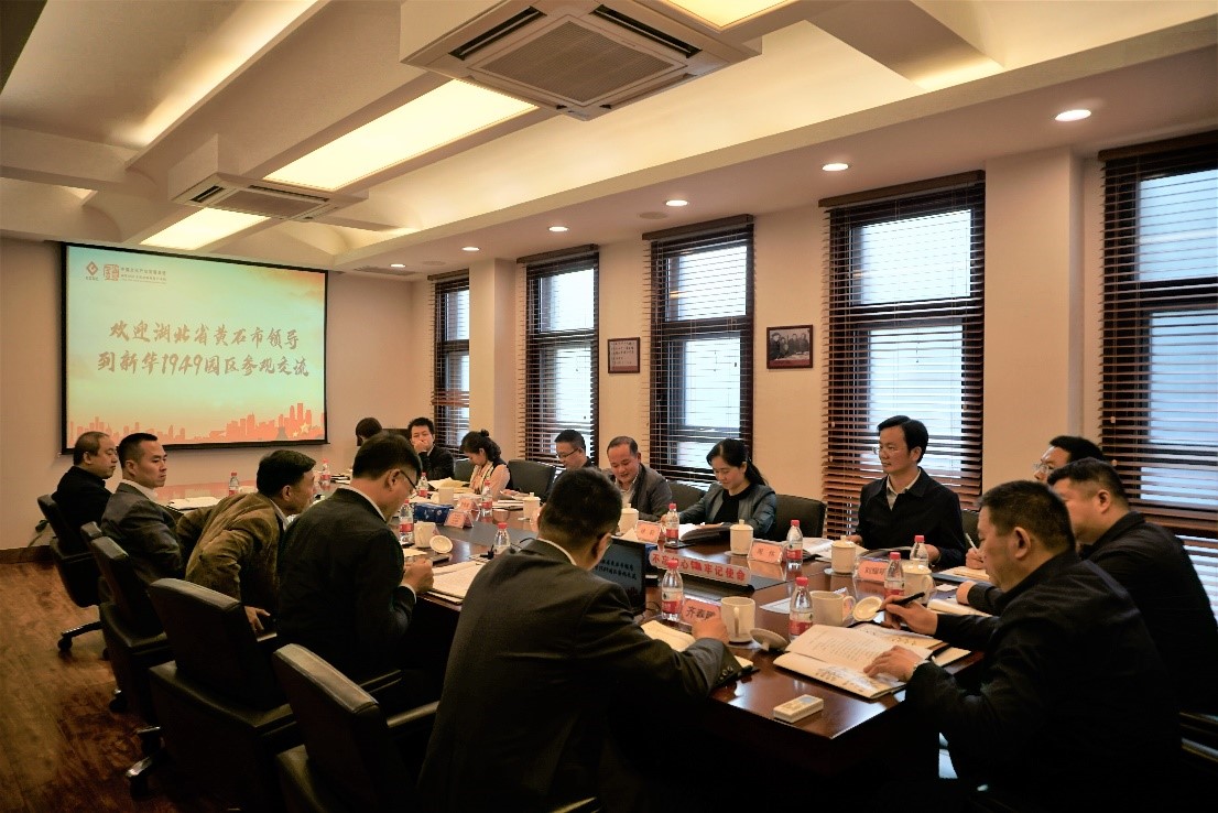 10月16日,中文发集团党委委员、副总经理、工会主席张忠灵及党委委员、副总经理李治华在“新华1949”文化金融创新产业园会见湖北省黄石市政府副秘书长、招商服务中心主任程艳民、黄石港区政府副区长徐莉一行。