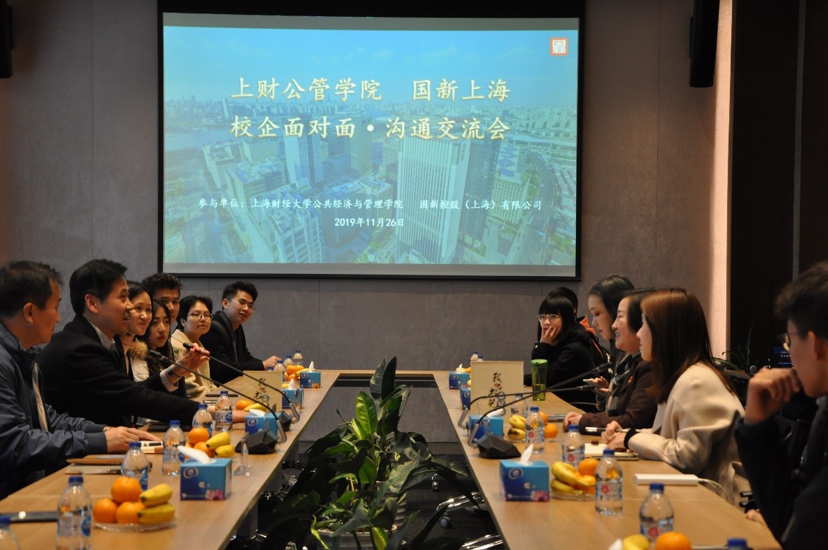 11月26日,国新上海与上海财经大学公共经济与管理学院围绕“信仰的力量”主题,联合开展党日活动暨校企面对面沟通交流会。上财公管学院党委书记方芳、国新上海党支部书记田晖、27位上财公管学院师生代表及国新上海相关人员参加活动。