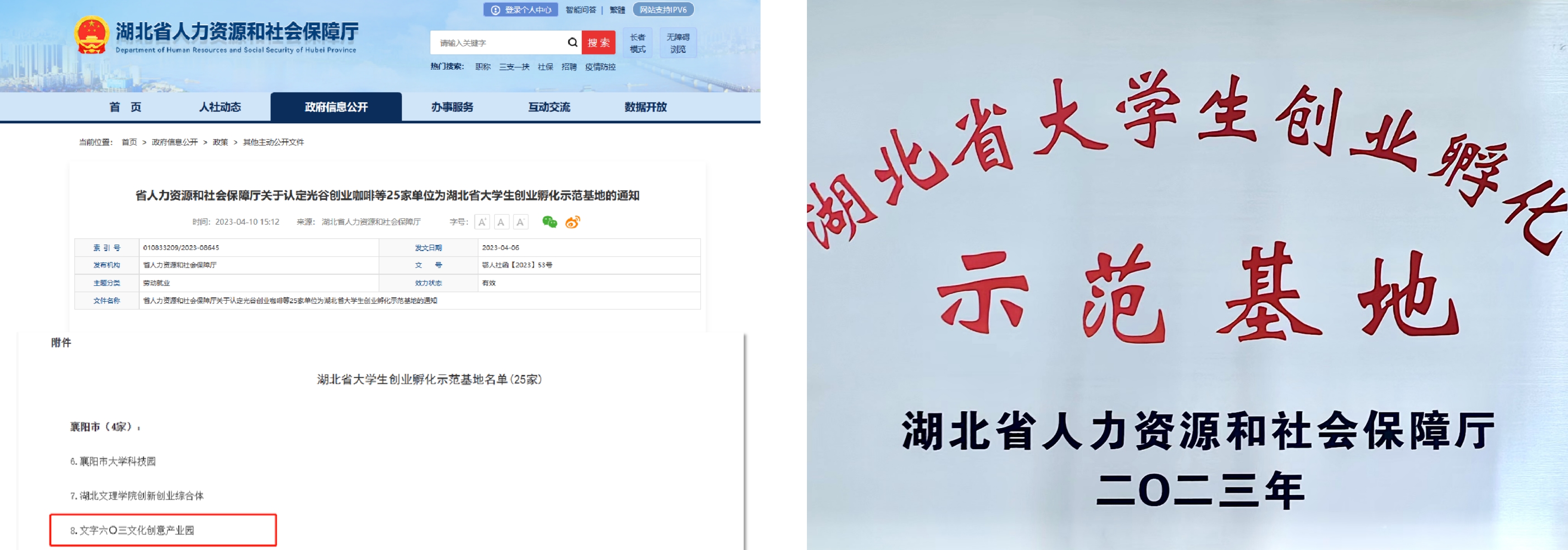 日前,湖北省人力资源和社会保障厅公布了2022年度湖北省大学生创业孵化示范基地名单,中文发集团所属文字六0三文化创意产业园成功入选。